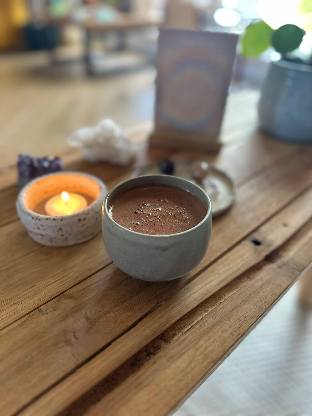 In mijn praktijk is de ceremonie een intieme ontmoeting met jezelf, gedragen door de groep. We werken met intenties, meditatie en klank om de werking van de cacao te verdiepen. Een moment van pure authenticiteit waarin alles wat er in jou leeft, er mag zijn.